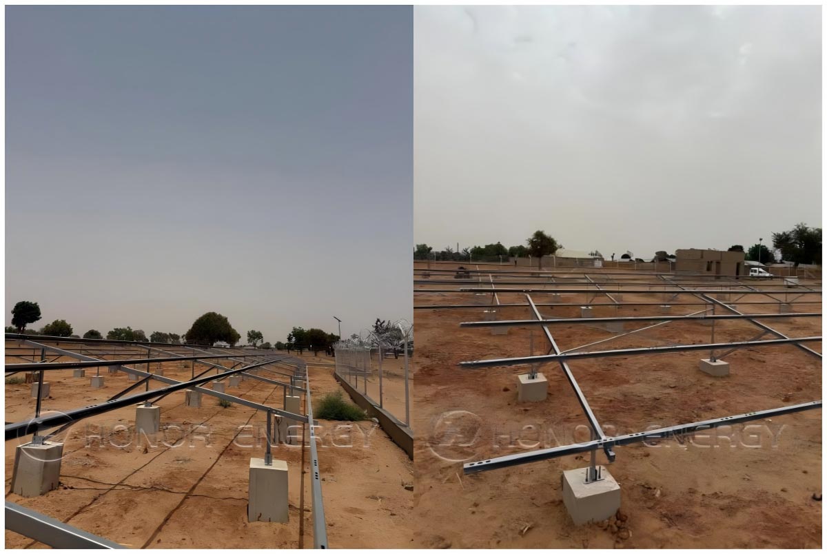 Iklim Afrika menimbulkan cabaran yang teruk kepada mana-mana kemudahan luar—sinar UV yang sengit, suhu tinggi, kelembapan yang tinggi, dan hakisan musim hujan. Atas sebab ini, kami telah menerapkan struktur pemasangan teras projek ini dengan gen "tegar": rangka kerja keluli bersalut zink-aluminium-magnesium.
